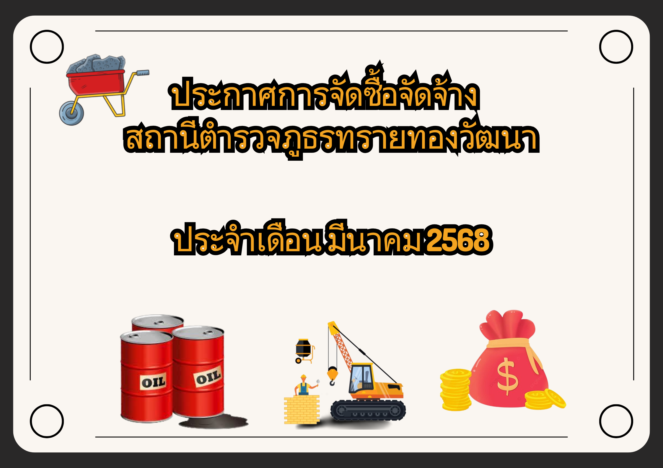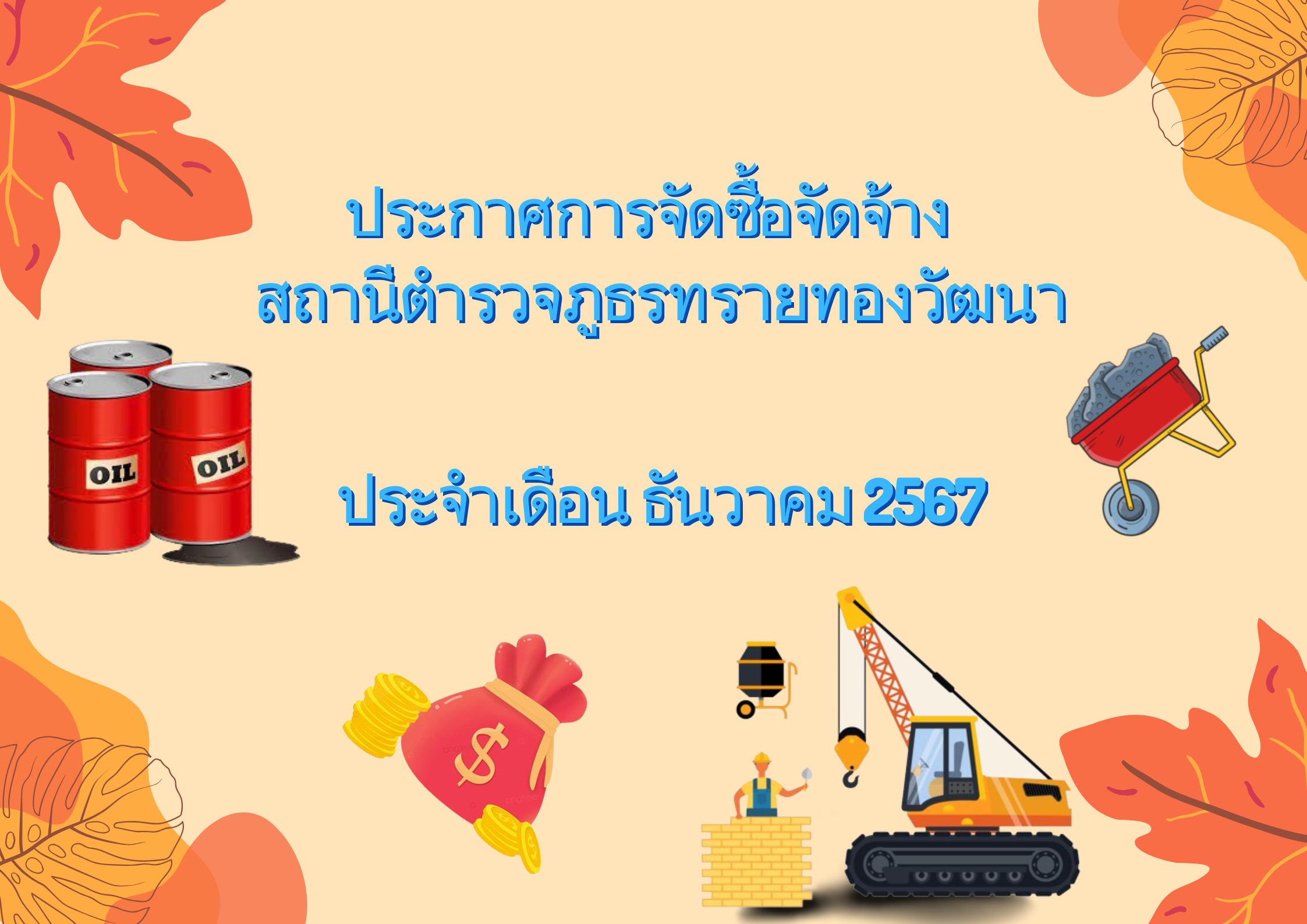 ประกาศผลผู้ชนะราคาน้ำมันเชื้อเพลิง ประจำเดือน ตุลาคม 2567 ประกาศผู้ชนะการเสนอราคาค่าอาหารสำหรับเลี้ย