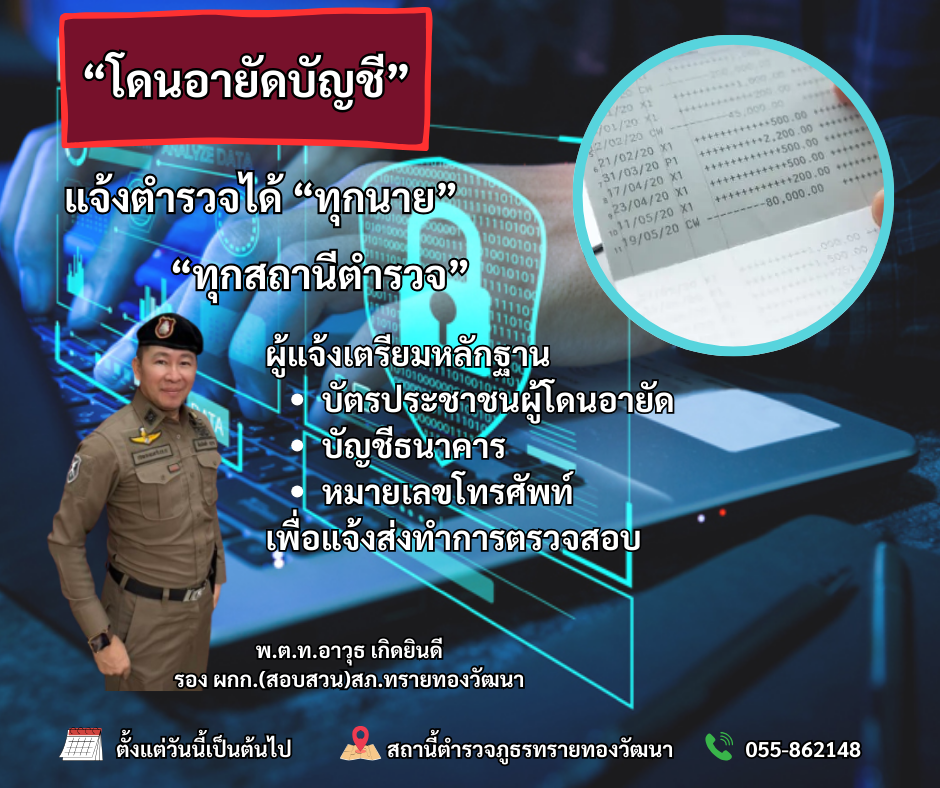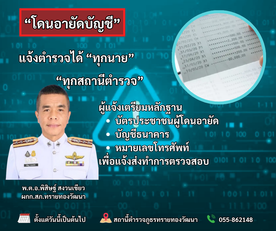 วันที่ 22 ตุลาคม 2568 เวลา 09.30 น. พ.ต.ท.อาวุธ เกิดยินดี รอง ผกก.(สอบสวน) สภ.ทรายทองวัฒนา โดยการสั่
