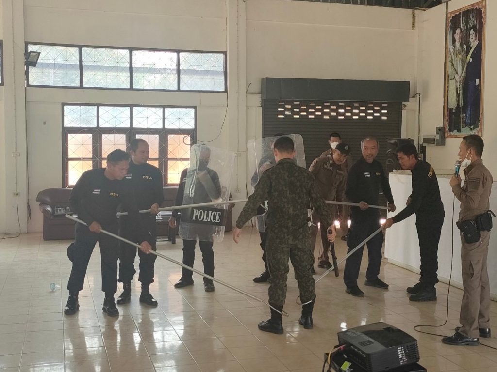 วันนี้ 14 ก.พ. 2567 เวลา 14.30 น. พ.ต.อ.แดนชัย งามทรง ผกก.สภ.ทรายทองวัฒนา พ.ต.ท.วิเชียร จันเขียวรอง ผกก.ป.สภ.ทรายทองวัฒนา, พ.ต.ต.ก้าน เริ่มศรี สวป.สภ.ทรายทองวัฒนา พร้อม ข้าราชการตำรวจ สภ.ทรายทองวัฒนาร่วมกิจกรรมการบรรยายให้ความรู้เกี่ยวกับการระงับเหตุบุคคลคลุ้มคลั่ง (Active Shooter หนี ซ้อน สู้ ) ให้กับ เจ้าหน้าที่รักษาชุดรักษาความปลอดภัยหมู่บ้าน(ชรบ) ร่วมถึงการควบคุมและแนะนำวิธีการต่างๆในการจับกุม